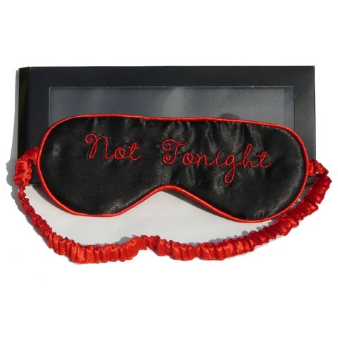 Mit dieser Schlafbrille weiß jeder sofort, was Sache ist - und Ihnen garantiert es einen erholsamen Schlaf, weil kein Licht ihn stört. Weicher schwarzer Satin innen und ein rotes elastisches Band garantieren Komfort und sicheren Sitz. vevendo® Schlafbrille "Not Tonight" - schwarz-rot Satin Schlafmaske Augenbinde Sexy Augenbinde / Schlafmaske